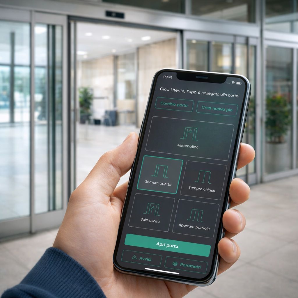 Más allá de facilitar ajustes, la App se integra como parte de un ecosistema de automatización más amplio. En combinación con sensores, motores y sistemas de control, permite que las puertas peatonales funcionen de manera coordinada y adaptable, alineándose con la lógica moderna de infraestructura inteligente.
