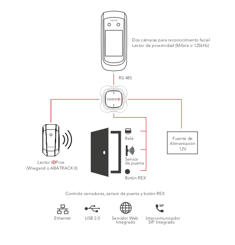 Una de las mayores ventajas del iDFace es su capacidad para adaptarse a diversas infraestructuras tecnológicas. El dispositivo incluye opciones de conexión como: